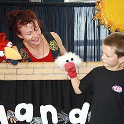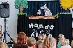 When you need kid's party entertainment for your special occasion, a puppet show is a great choice! Popular at kindergarten's, childcare centre's, private functions, and schools (photo), the large colourful hand puppets are fun, fun, fun!